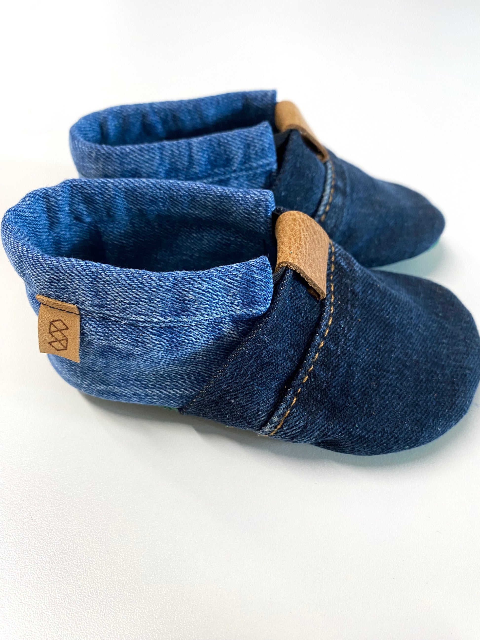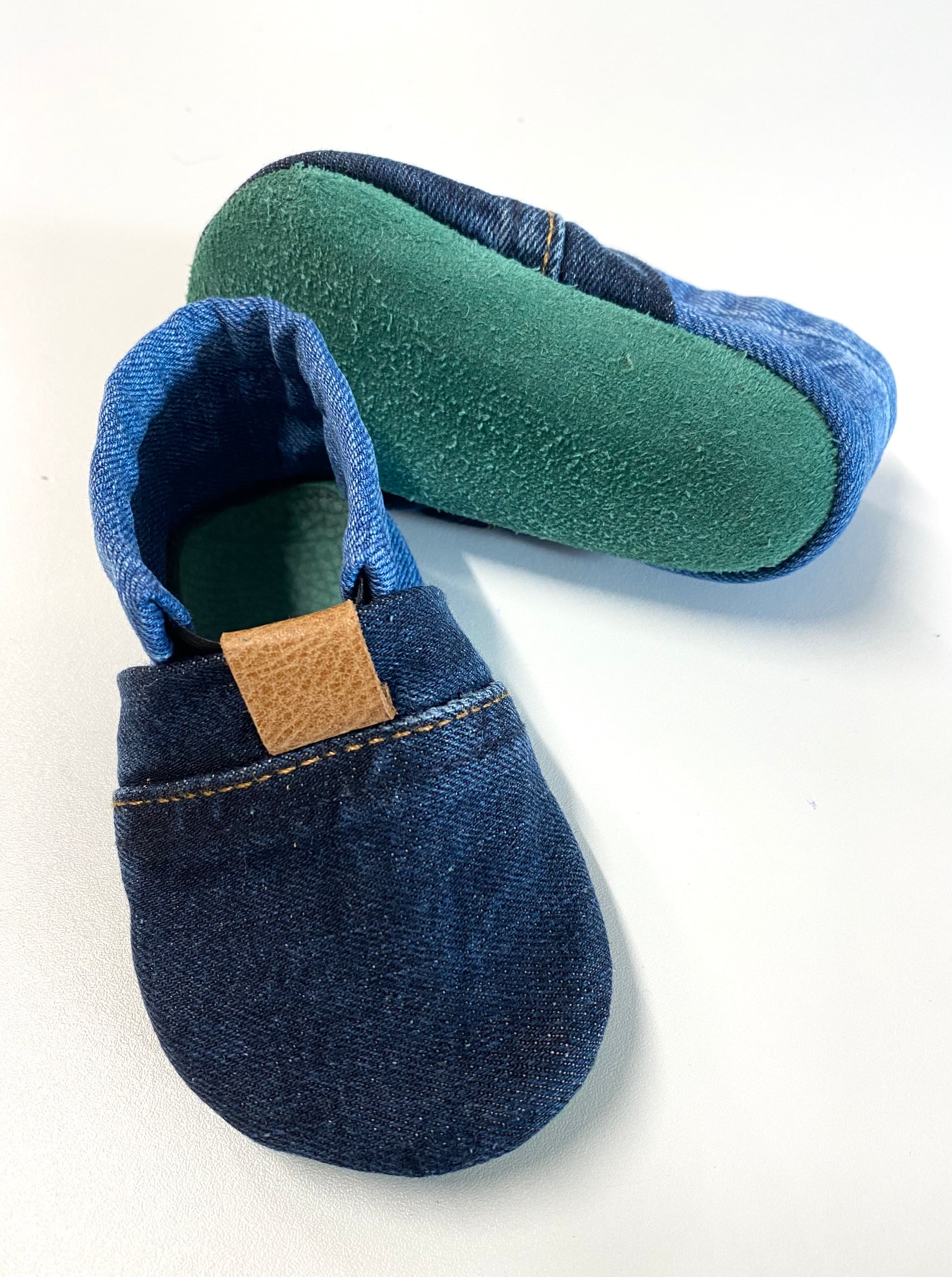 Les chaussons MOCCA LEO de SueHo sont des pantoufles upcyclés, légères et confortables pour bébés qui s'adaptent merveilleusement au pied. La semelle est en peau d'agneau recyclé ou cuir durable ; la tige est en denim recyclé. Une bande élastique intégrée permet de s'habiller rapidement. Il s'adapte parfaitement à la cheville et assure une bonne tenue. La coupe et le cuir souple permettent un confort de port comme marcher pieds nus. Pour les bébés à partir de 6 mois , particulièrement adapté comme chaussons a quatre pattes pour une utilisation à l'intérieur. Disponible dans différentes combinaisons de couleurs.